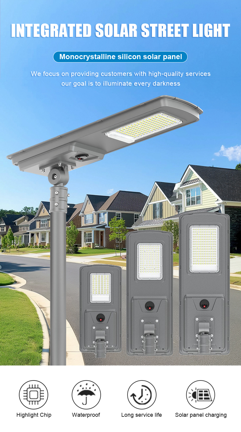 Bright Outdoor Solar Street Lamp LED All in One 60W Integrated Design for Pathway Parking and Public Area Lighting