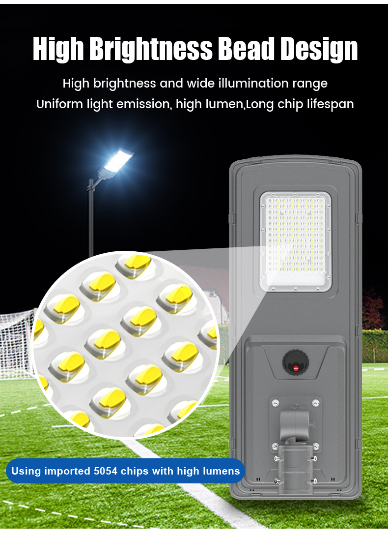 | HZ-TY-035 100W | 1.LED :SMD5054 100pcs 2.Material: Aluminum alloy 3.Waterproof grade: IP65 4.Charging time:8H strong sunlight 5.Light model : Light control + Time control + PlR sensor The lamp automatically turn on after sunset , and off when sunrise. Working mode Alternative working mode : Dusk to dawn automatically + Time control + Steady 6.Working time :All light >8hours, Raining days 3-4days 7.Beam angle :120° 8.Color:3000-7000K 9.Light pole diameter: 60-80mm 10.Stroage temperature :0-55° 11.Operating Humidity 90RH% 12.Discharge temperature :-10~60° ° |