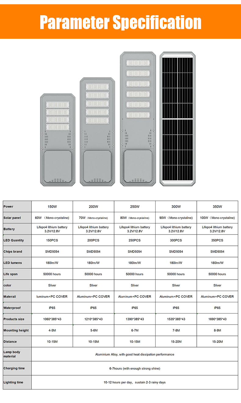 | Item NO | Specification | LED chip | Solar capacity | Solar panel | Product size (mm) |